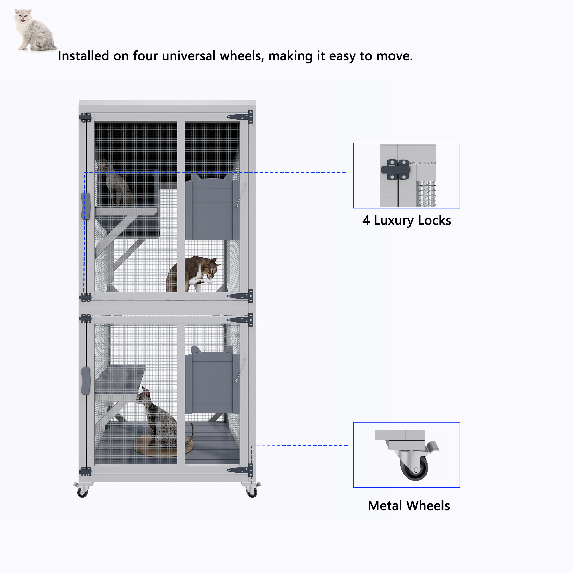 - Smooth Rolling Wheels with Brakes: 4 heavy-duty metal wheels allow easy movement; 2 lockable wheels keep the enclosure securely in place.
