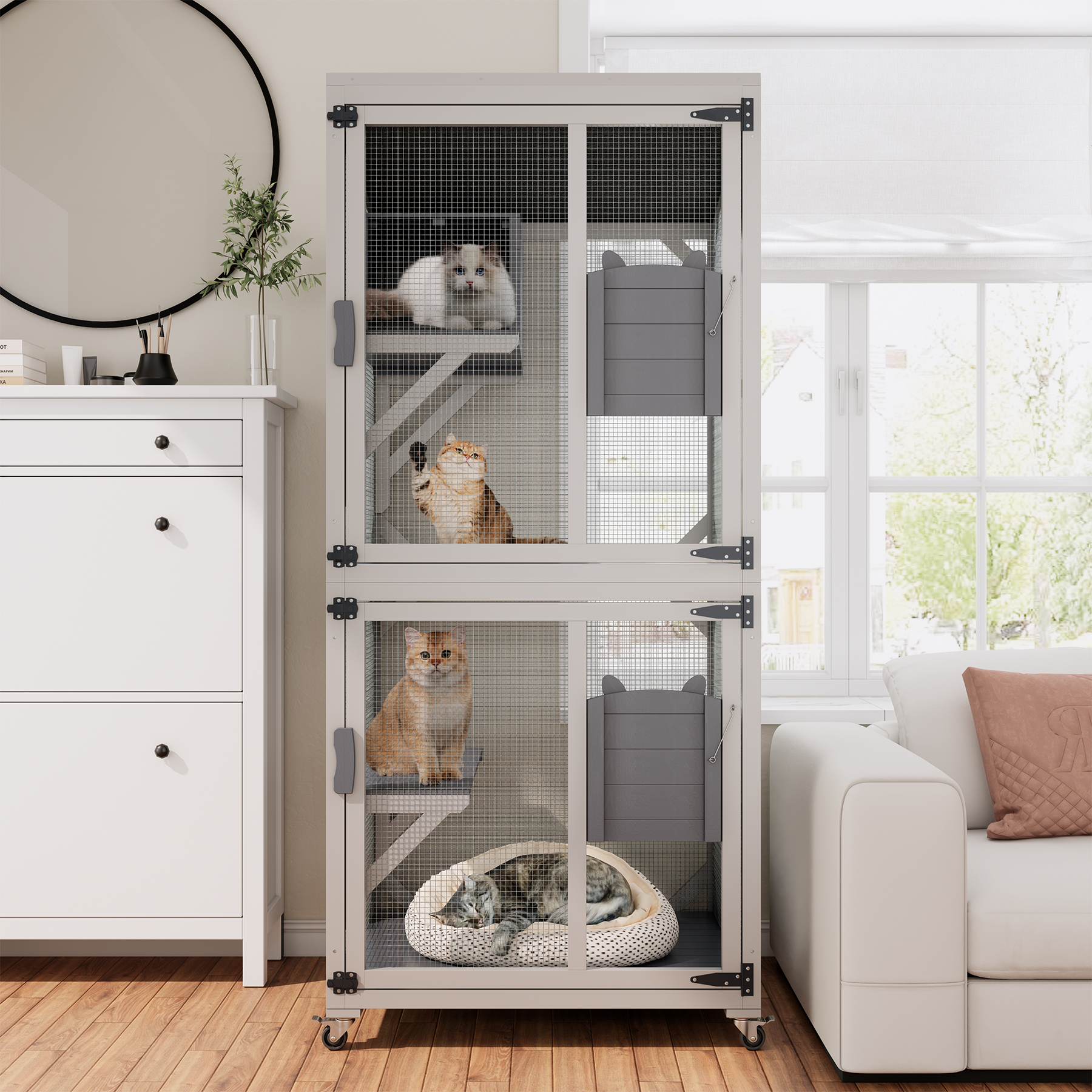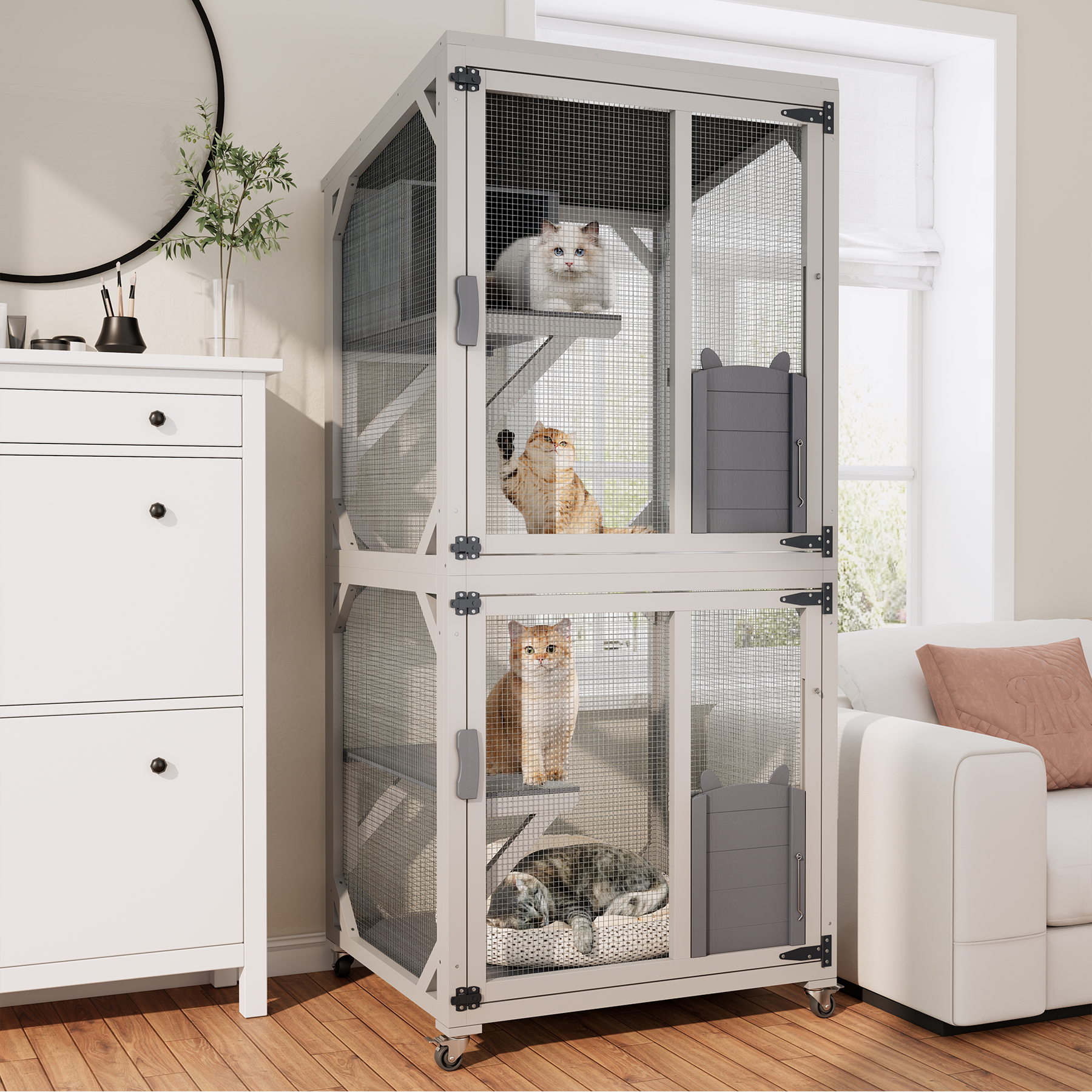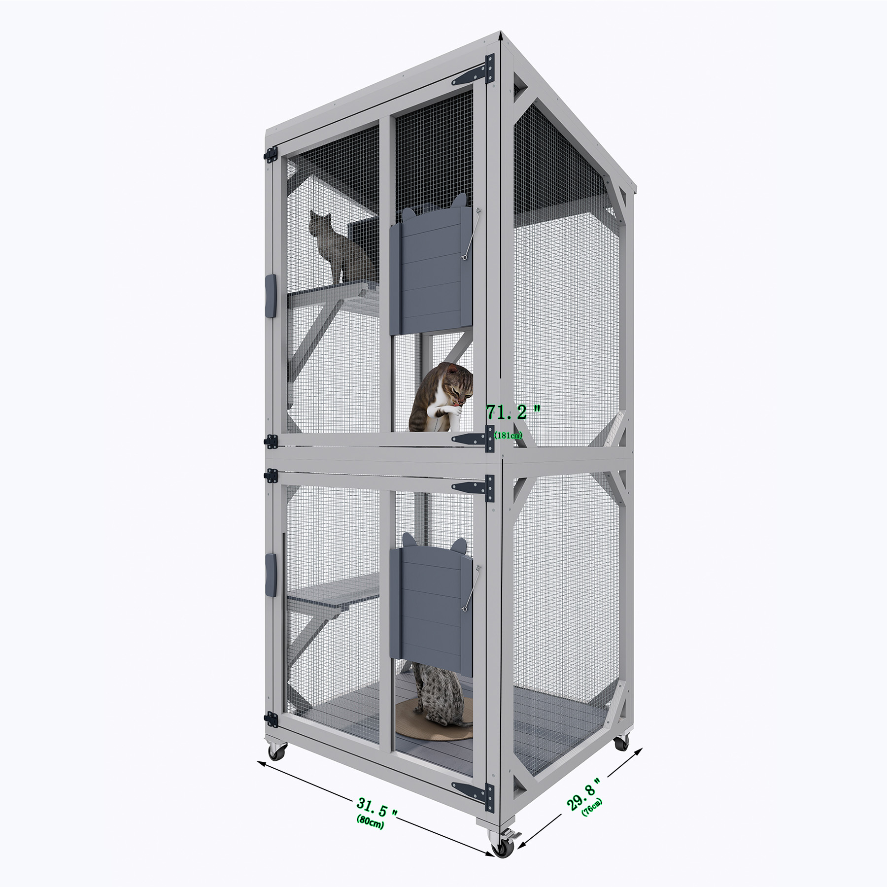 - Large Multi-Level Space: 71.2" tall catio with 3 jumping platforms, a cozy resting box, and a spacious play area for one or multiple cats.